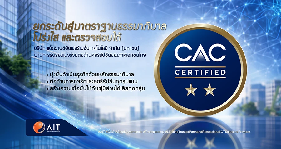 “AIT” จัดประชุมสามัญผู้ถือหุ้นประจำปี 2569 ผ่านรูปแบบ E-AGM ผู้ถือหุ้นไฟเขียวปันผลเพิ่ม 0.21 บาทต่อหุ้น ตอกย้ำหุ้น Dividend Stock มุ่งเป้าผู้นำ Professional ICT Solutions Provider เติบโตยั่งยืน